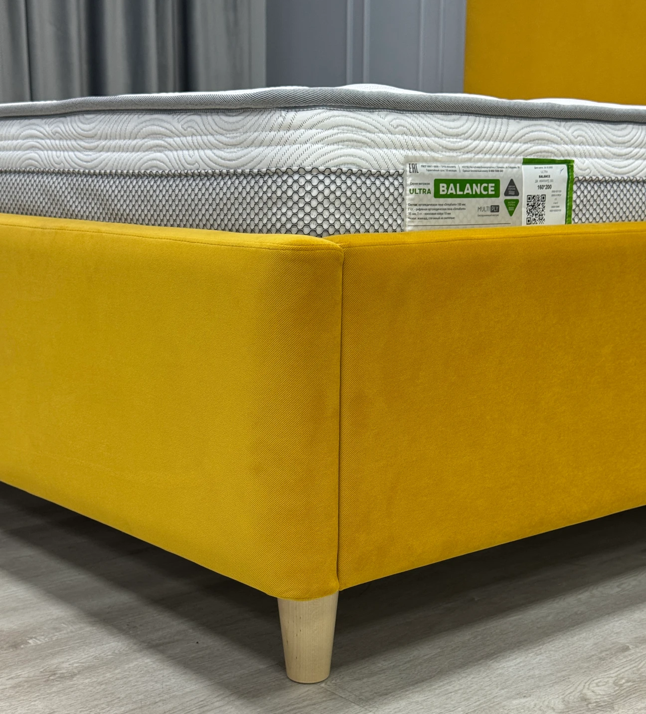 Интерьерная кровать «Selena» – эксклюзивная модель для фирменных салонов в трендовом минималистичном дизайне со съемными подушками и возможностью выбора высоты ножек.