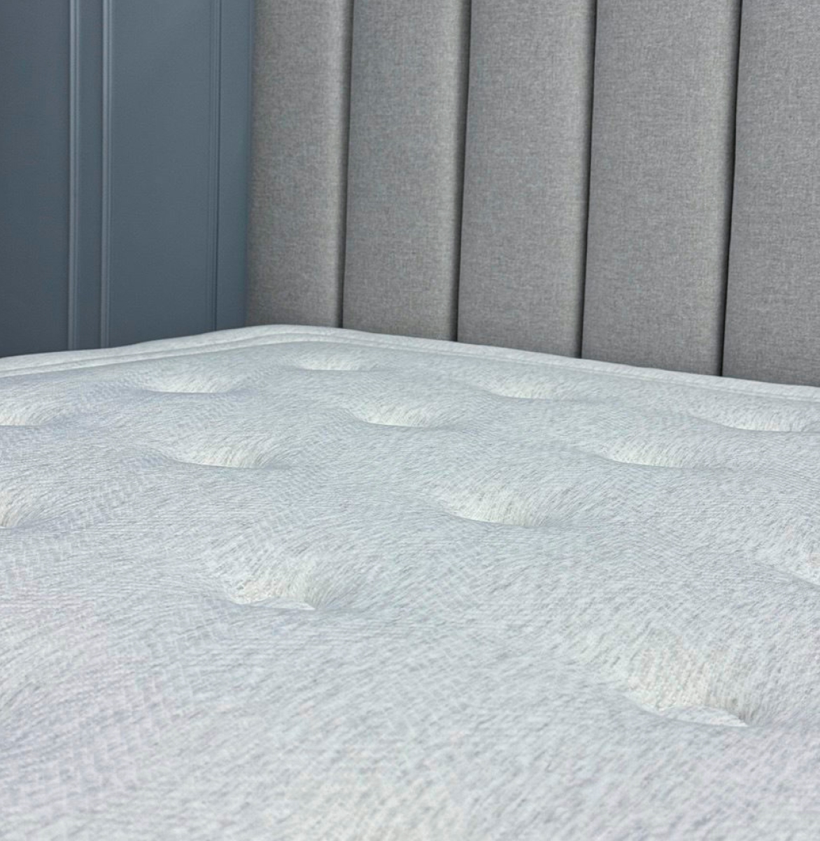 Трикотаж «Melange» — это сочетание изысканного стиля и безупречных эксплуатационных качеств. Он обладает высокой плотностью и прочностью, что гарантирует долговечность и устойчивость к износу, оставаясь при этом удивительно лёгким и воздушным. Эластичность материала обеспечивает идеально ровную и гладкую поверхность матраса на протяжении всего срока службы, а мягкая текстура дарит комфорт и уют во время сна. Трикотаж «Melange» не только практичен, но и отличается благородным внешним видом, подчеркивая премиальность матраса.
