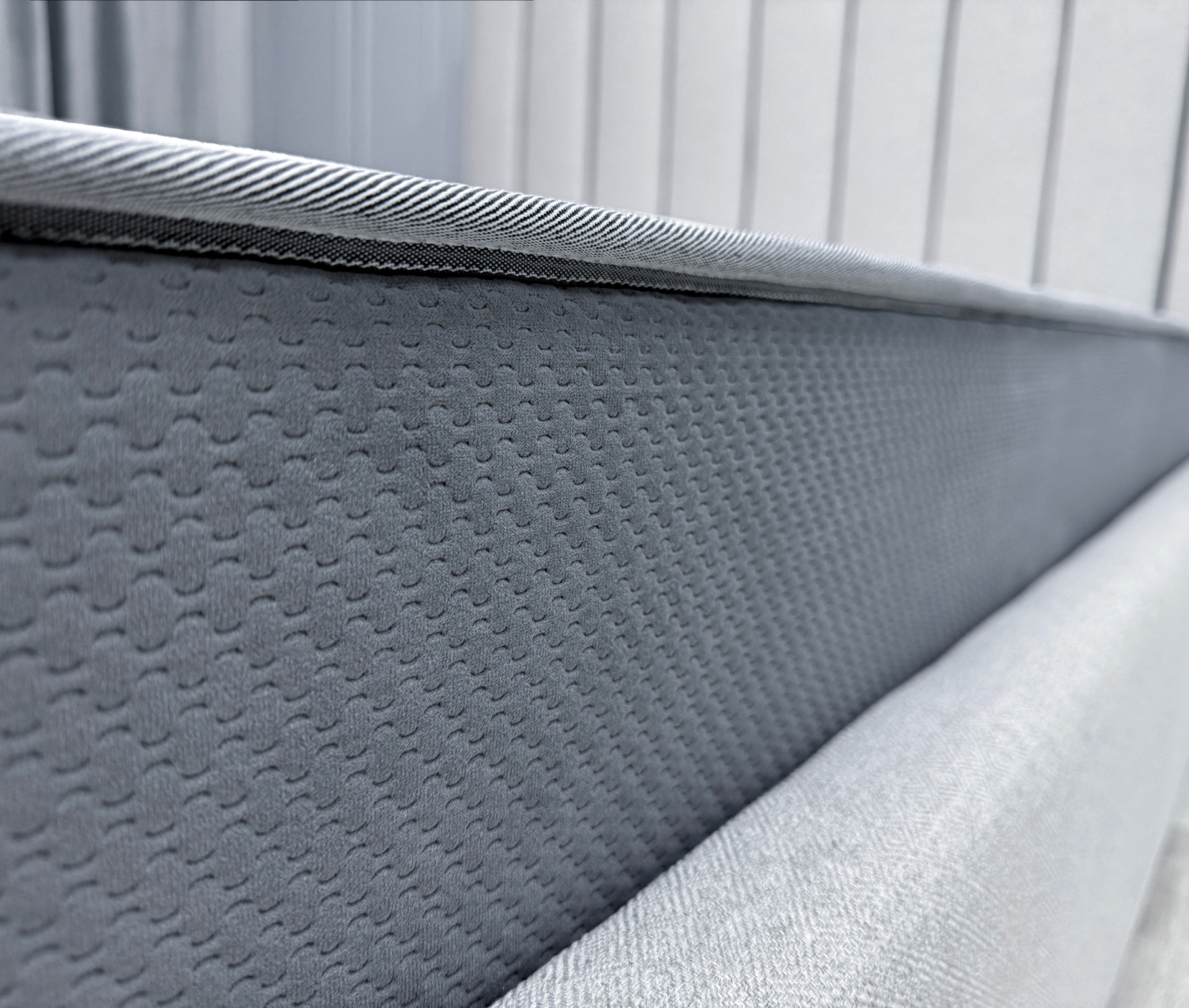 Короб ППУ - элемент конструкции матраса, усиливающий жесткость пружинных моделей по краям, предотвращая проседание при регулярной нагрузке. Особенно важен при локальных нагрузках на борт матраса (посадка, подъем). Используются два вида пен: стандартная у изголовья и повышенной плотности в боковых зонах.