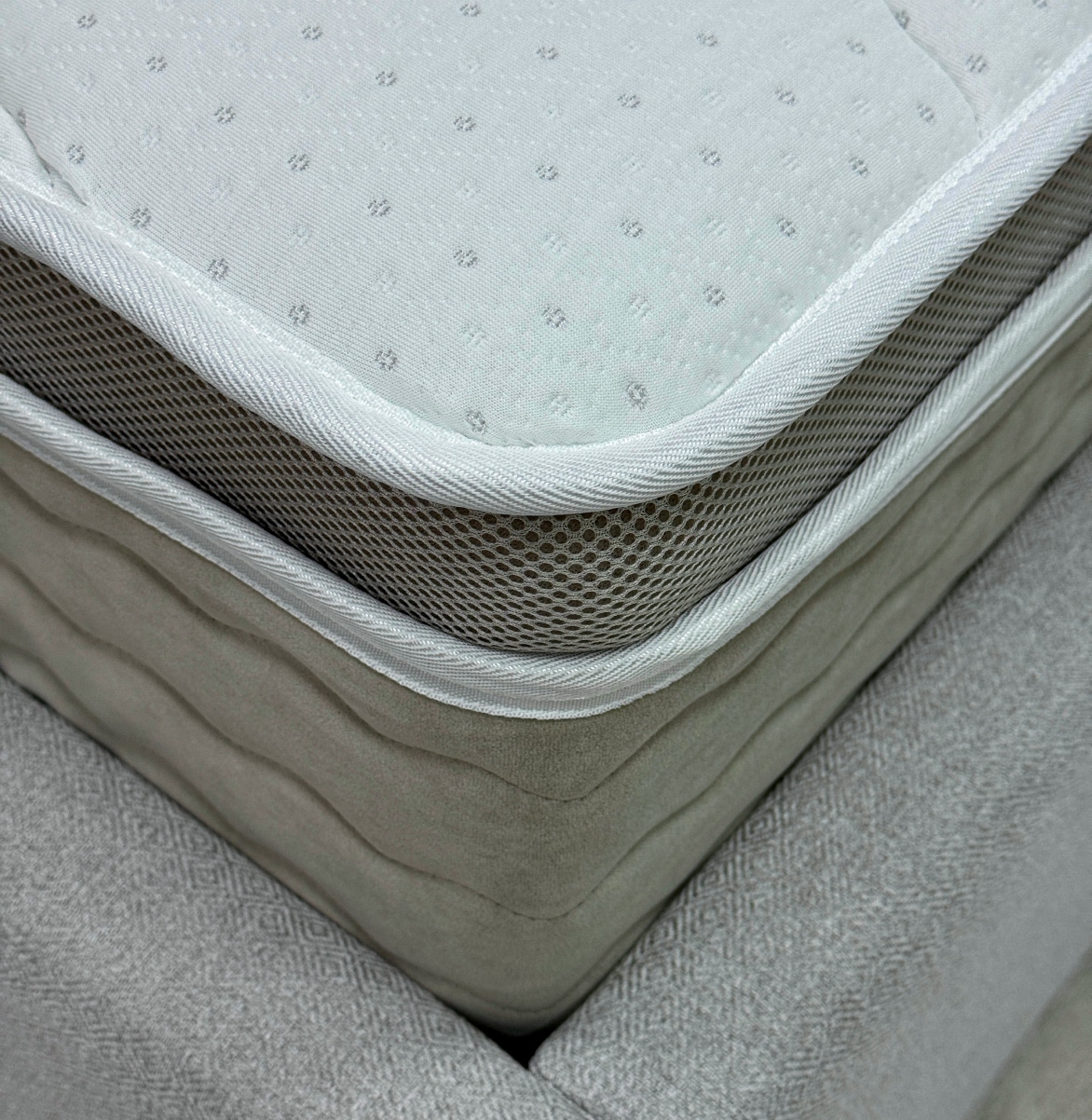 Чехол Трикотаж «X117 Silver», стеганный на синтепоне (300 г) + ППУ 10 мм, Мебельная ткань Велюр «Teddy 005», 3D сетка
